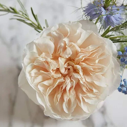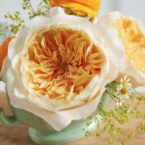 In the 1940s, David Austin read a copy of George Bunyard's book on old roses and gave him the idea of crossing old roses with modern roses. His objective was to create new roses in the style of old roses, thus combining the unique charm and fragrance of old roses with the wide color range and repeat-flowering qualities of modern roses. In the year 2000 David began breeding cut roses. He was looking for roses with the shapes and fragrances of Old Garden roses but with the vase life of a commercial cut varieties. Alexandra Farms is growing these varieties for the cut flower markets and are testing many new varieties every year.