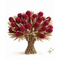 Textural and dramatic, our Australian Dried Banksia Menziesii – Dyed Burgundy features 5 stems of locally grown Banksia, professionally coloured to achieve a rich wine-toned finish. With a stem length of approximately 45cm, this bunch is ideal for bouquets, DIY floral designs, or as a stand-alone statement in vases.