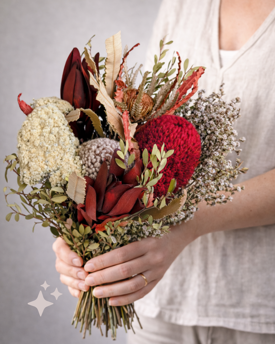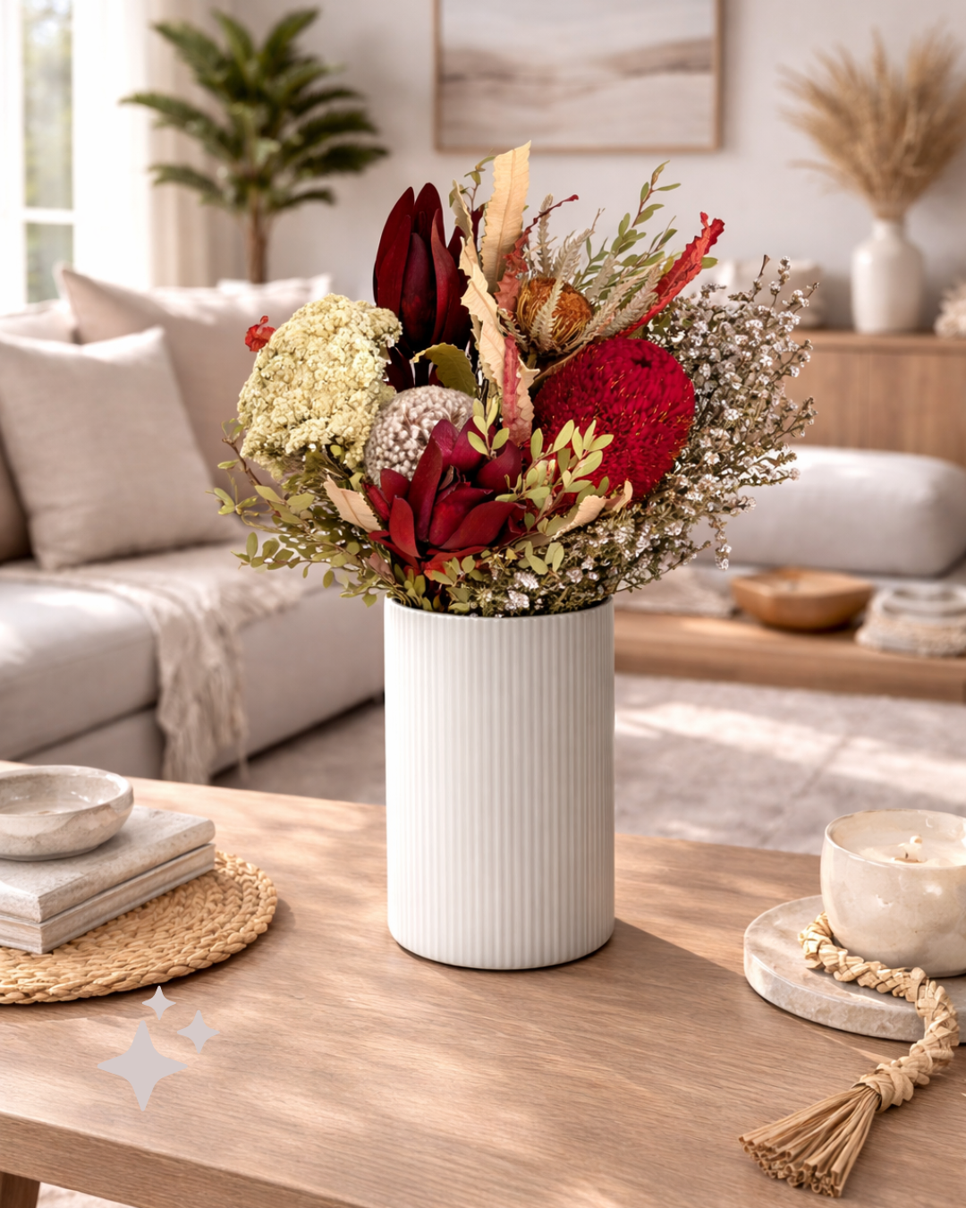 - Pre-arranged Floral Design – Professionally curated blend of Australian dried flowers