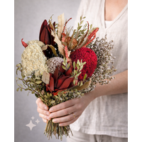 Bold and vibrant, our Ready 2 Go Mixed Native Bouquet Bunch – Red features a striking blend of Australian native dried flowers, including Banksia Prionotes, Banksia Burdettii, Banksia Formosa, Leucadendron, Verticordia Brownii, and Tea Tree varieties. Each bunch is approximately 45cm in size and showcases deep red and warm autumnal tones for dramatic impact.