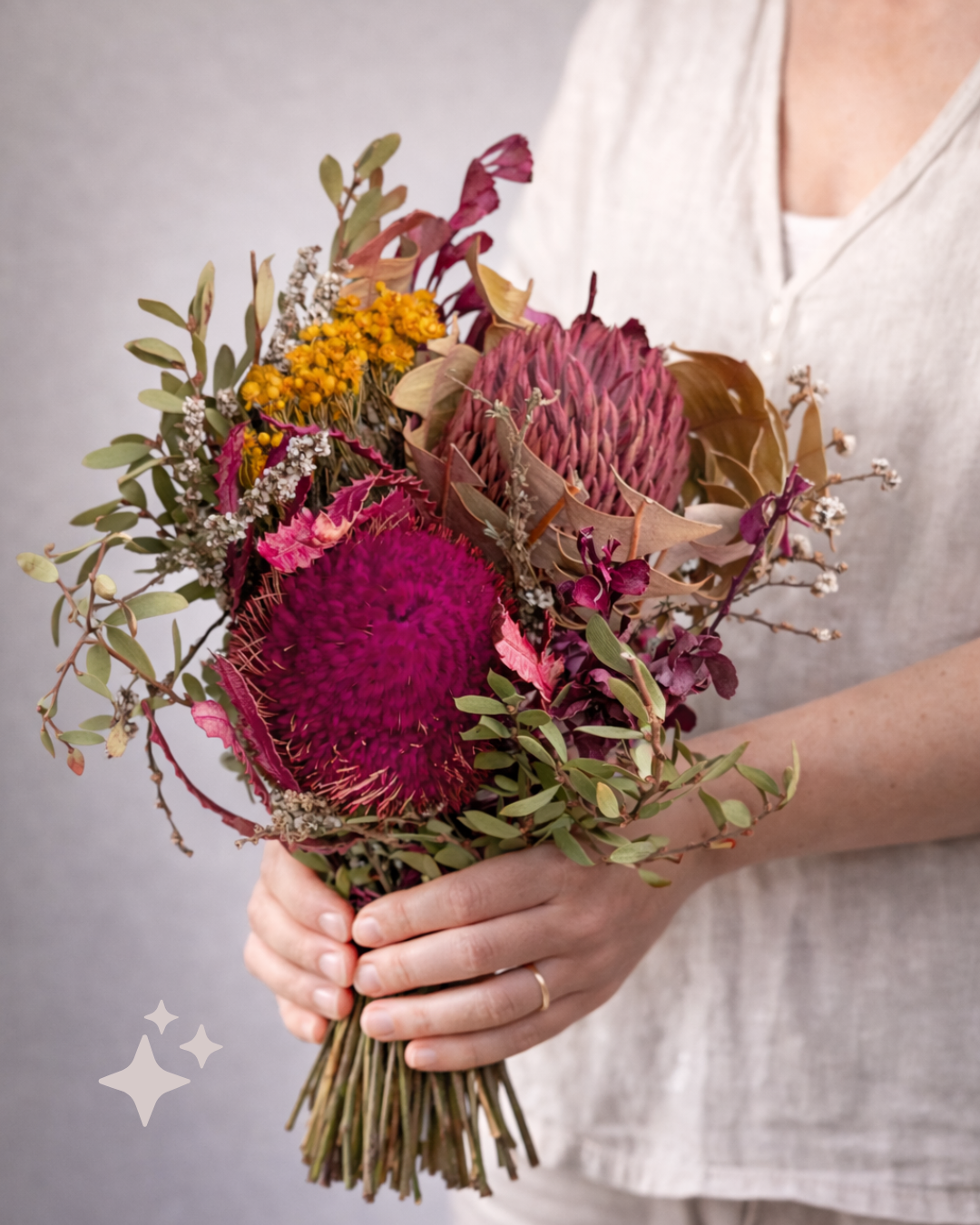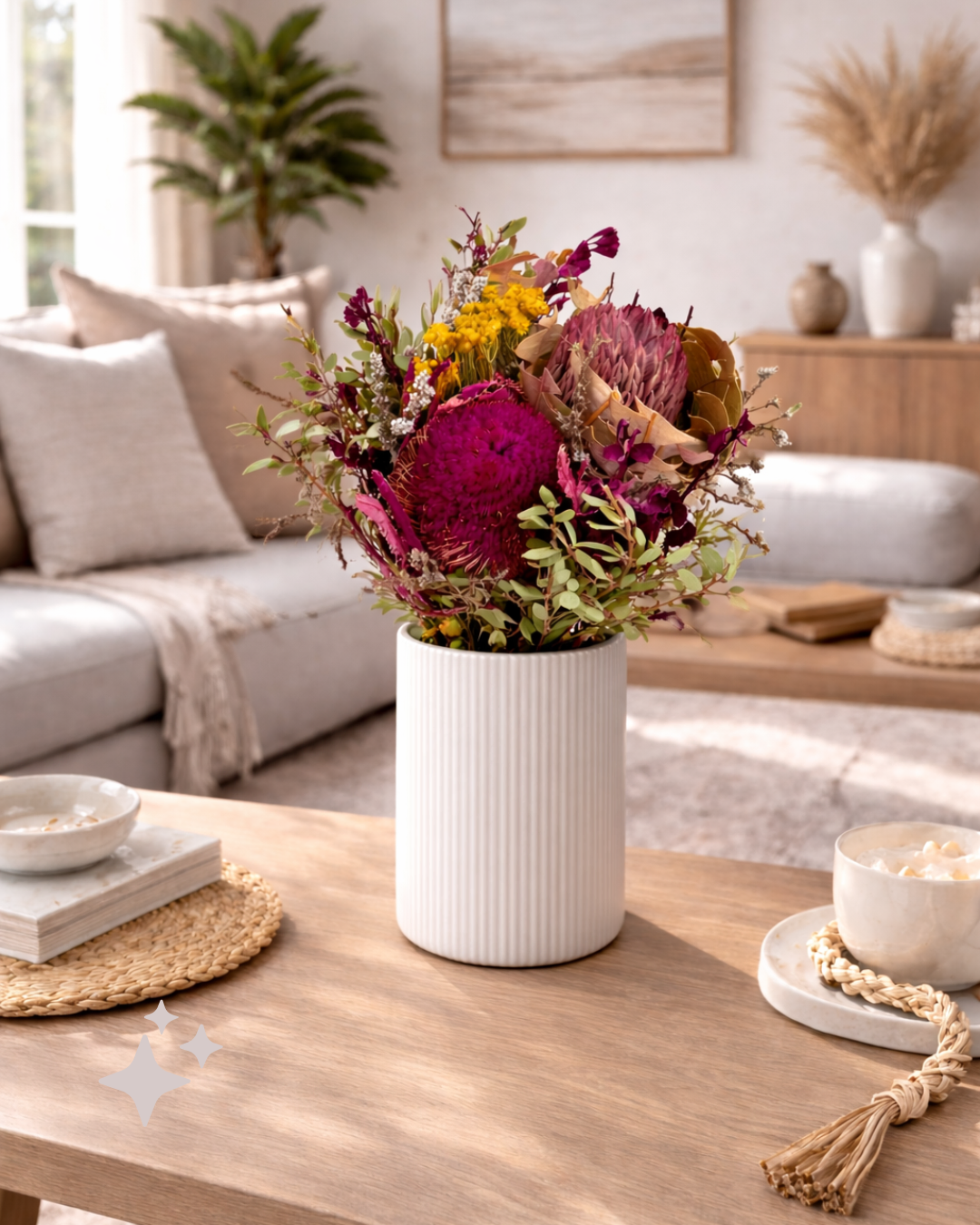 - Pre-arranged Floral Design – Professionally curated blend of Australian dried flowers
