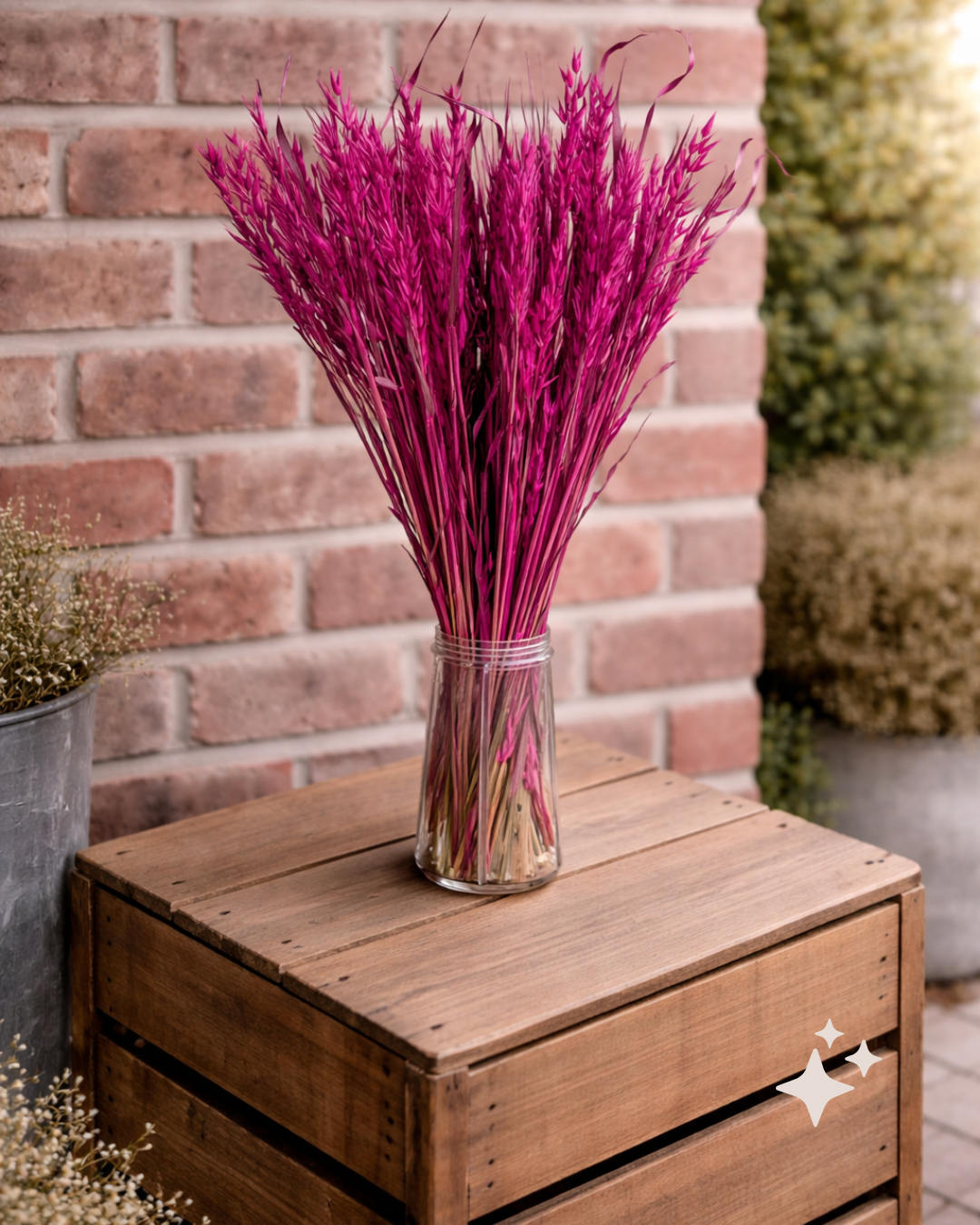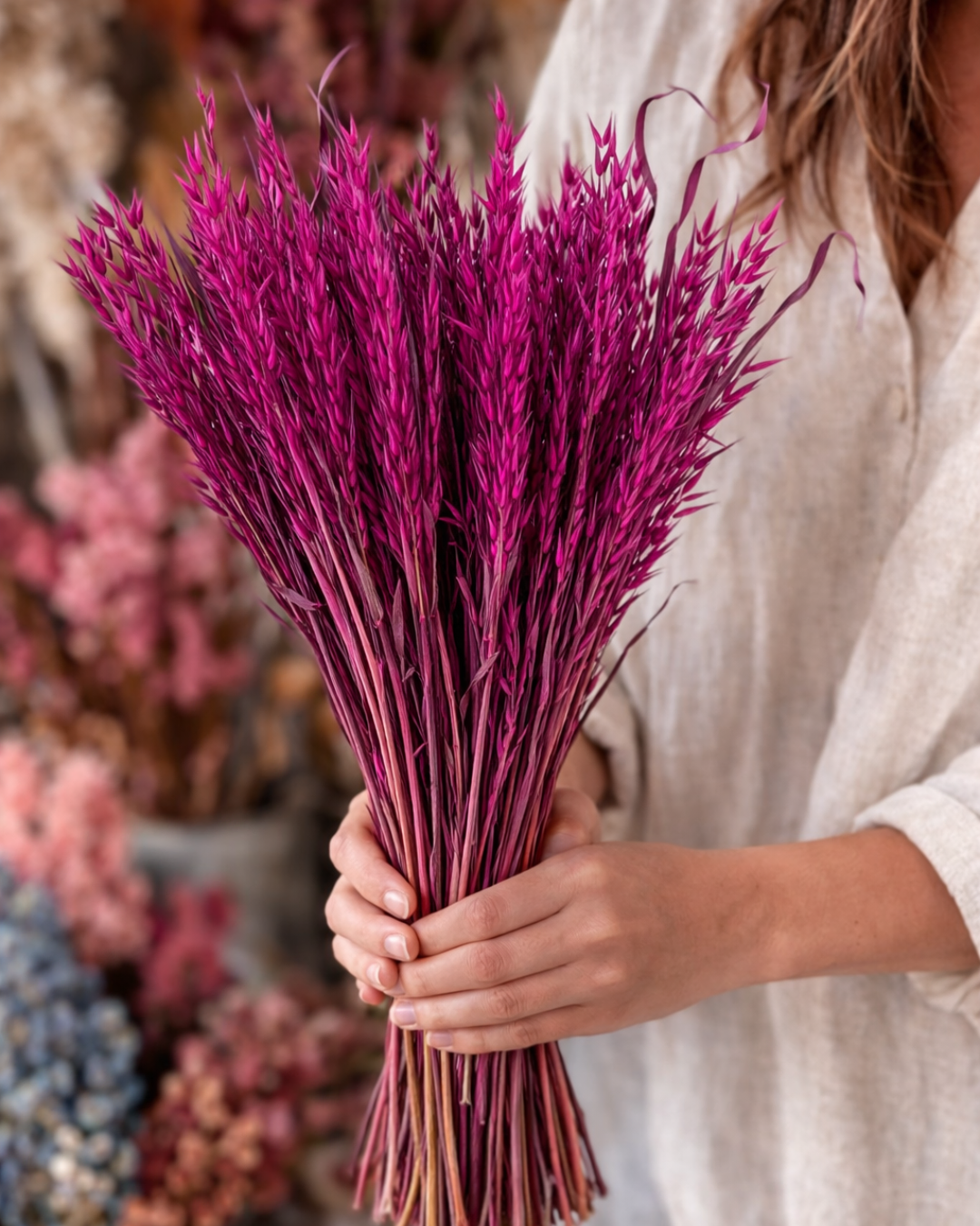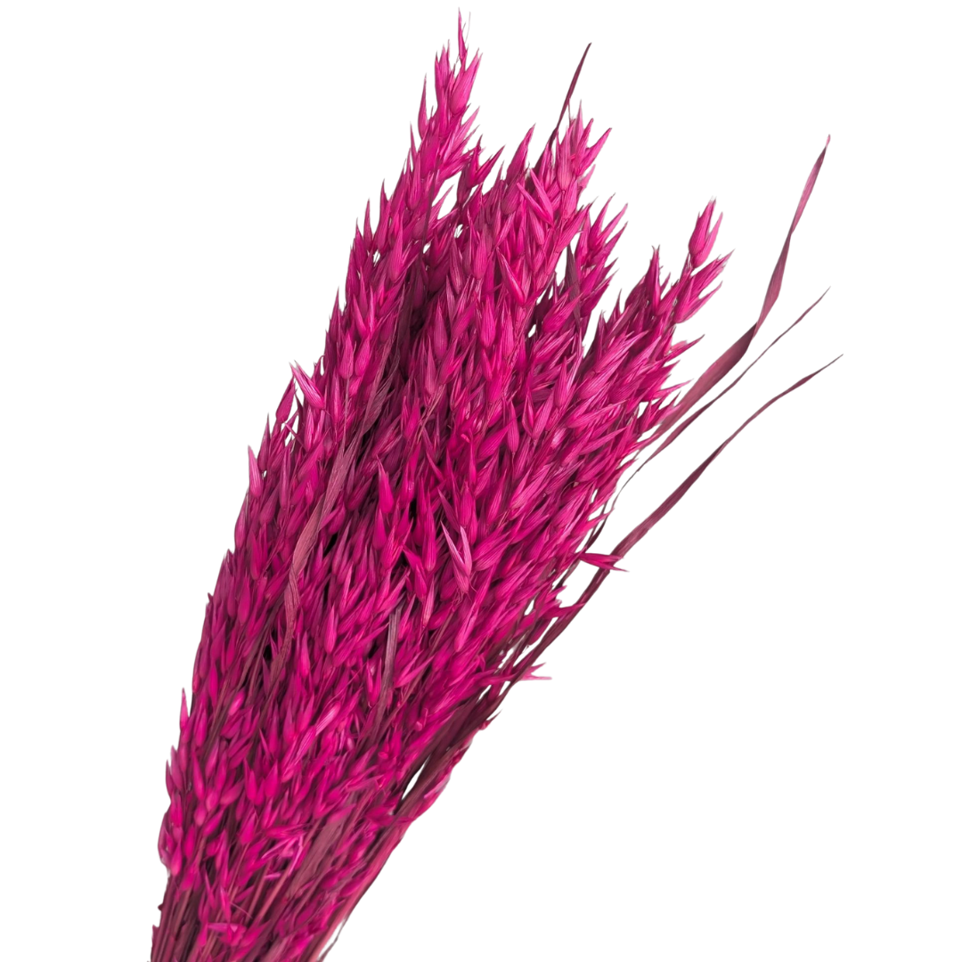 Bring bold colour, texture, and sculptural movement to your designs with our Dried Avena in Cerise. Each bunch includes 80–100 stems at approximately 50cm in length, forming a large, generous bunch that adds volume and flow to any arrangement. The upright stems are ideal for shaping and sculpting floral designs, making them a favourite for DIY styling, event installations, and seasonal gifting.