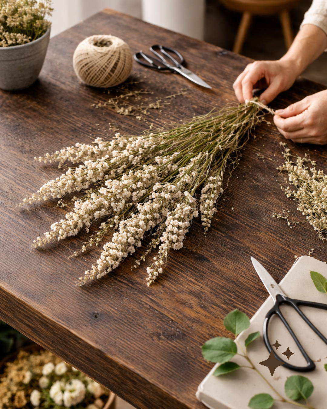 - Mix With Fresh Flowers – contrast preserved pieces with fresh botanicals