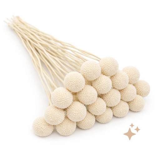 Delicate and airy, the Preserved Heath Aster brings a whimsical touch to any arrangement with its petite, daisy-like blooms clustered along slender, branching stems. These preserved florals offer a soft texture and lightness, perfect for layering or filler work in seasonal arrangements, styling sets, or bouquet design.