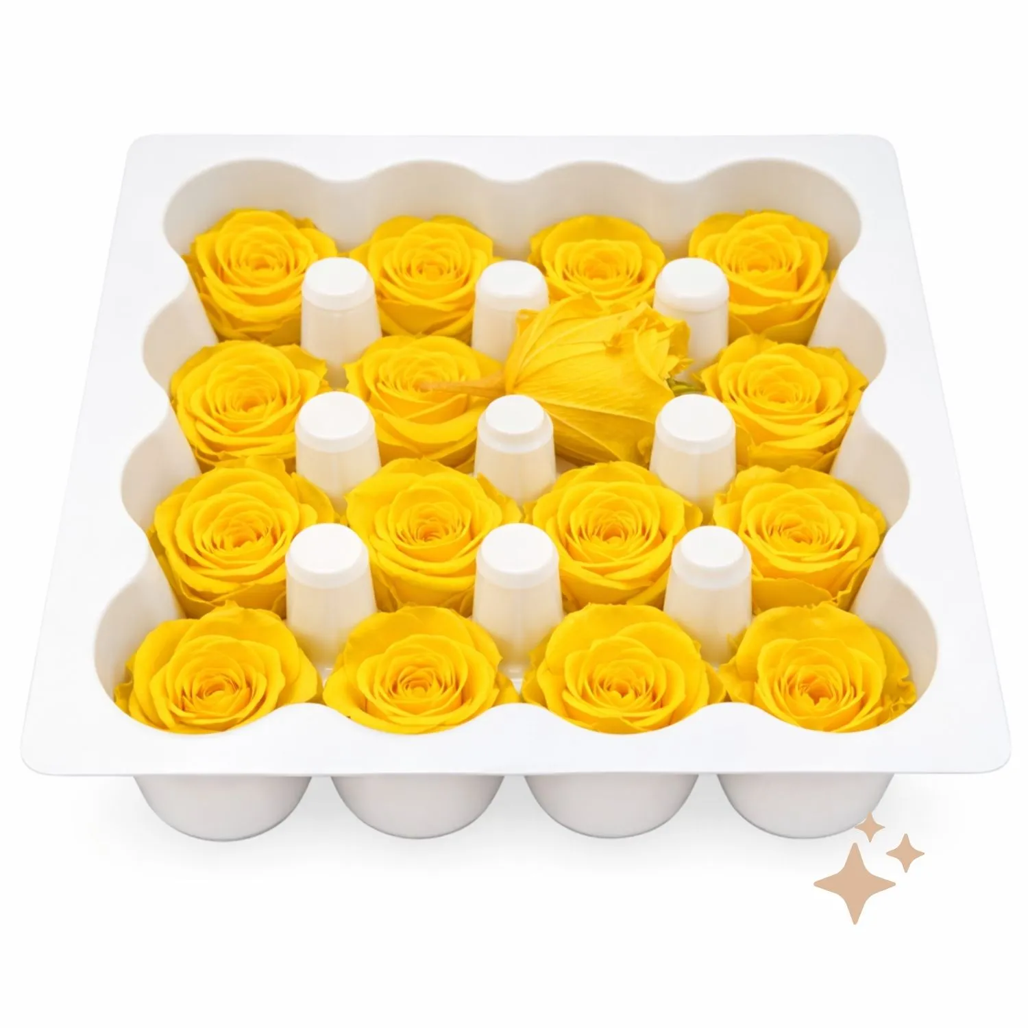 Buy Preserved Sprayroses, 16 pack, 2-3cm, Saffron Yellow