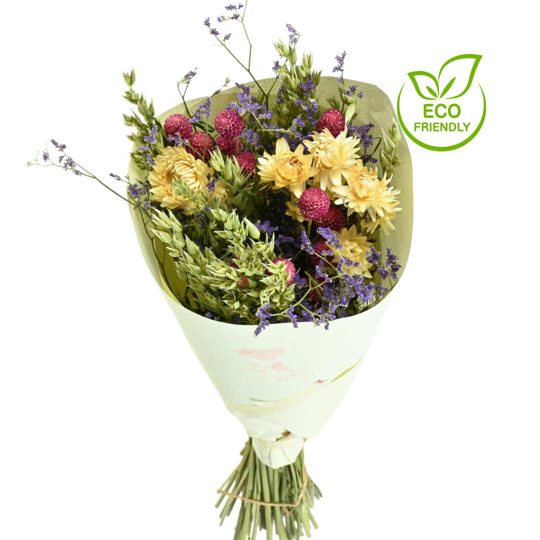 3. ECO-FRIENDLY CHOICE: Our bouquets with the Eco-Friendly mark are made from sustainably dried flowers and require no water or additional resources, making them an environmentally friendly option for your home or office. Even the paper sleeve is made from dried flower waste!