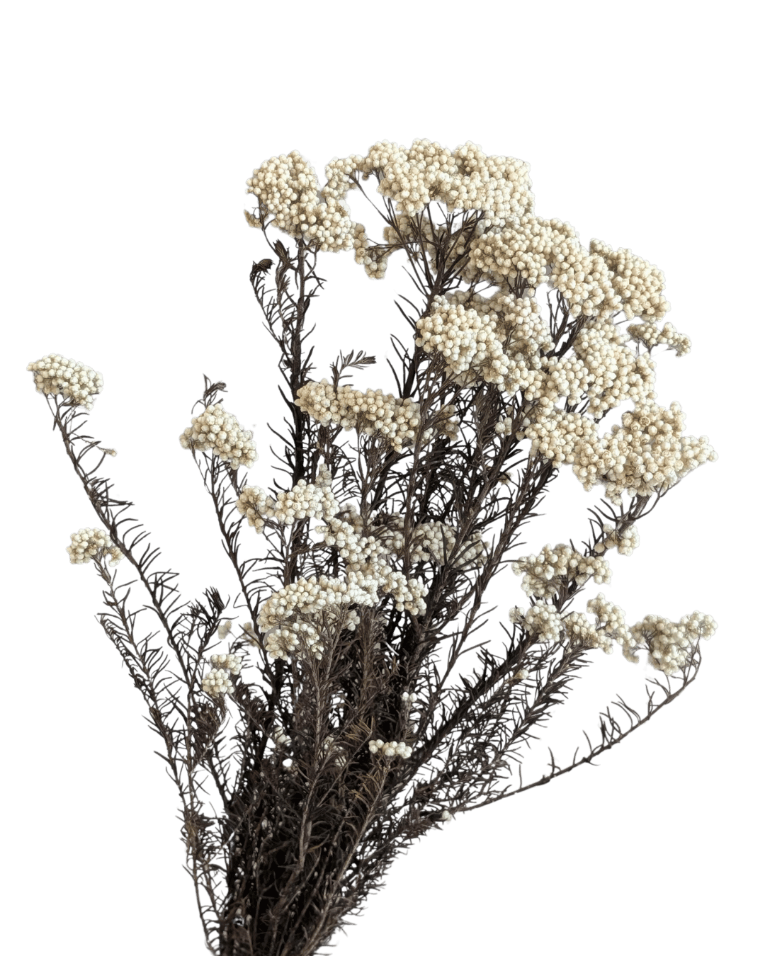 Our preserved Rice Flowers are much loved for their cluster of tiny flowers on top of the bunch. The range of colours available makes them versatile as you can mix and match them easily with other dried and preserved flowers.