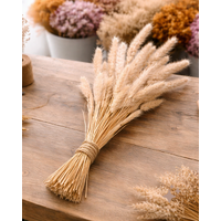 Introduce a clean, minimalist accent to your arrangements with our Dried Setaria – White, a crisp filler grass offered in large bunches of 40–50 stems, each approximately 60cm in length. This variety features a pure white tone, ideal for creating contrast, softening bold palettes, or enhancing neutral styling. While the stem count remains consistent, these bunches have slightly less volume compared to the other colours—perfect for refined, airy compositions.