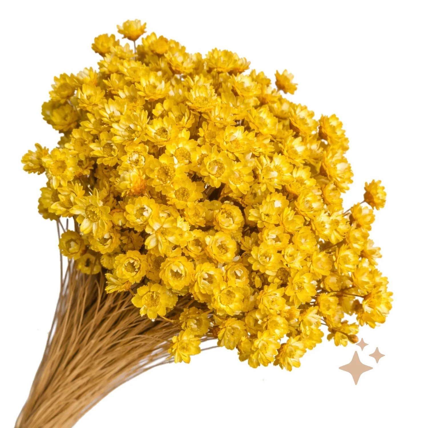 Glixia, also known as Spring Star Flowers, are small, star-shaped dried flowers with a crisp, papery texture. This 50g bunch includes approximately 40cm long stems, ideal for floral design, styling, and DIY projects. The yellow colour adds a cheerful, sunny accent to posy bouquets, box arrangements, and seasonal styling.