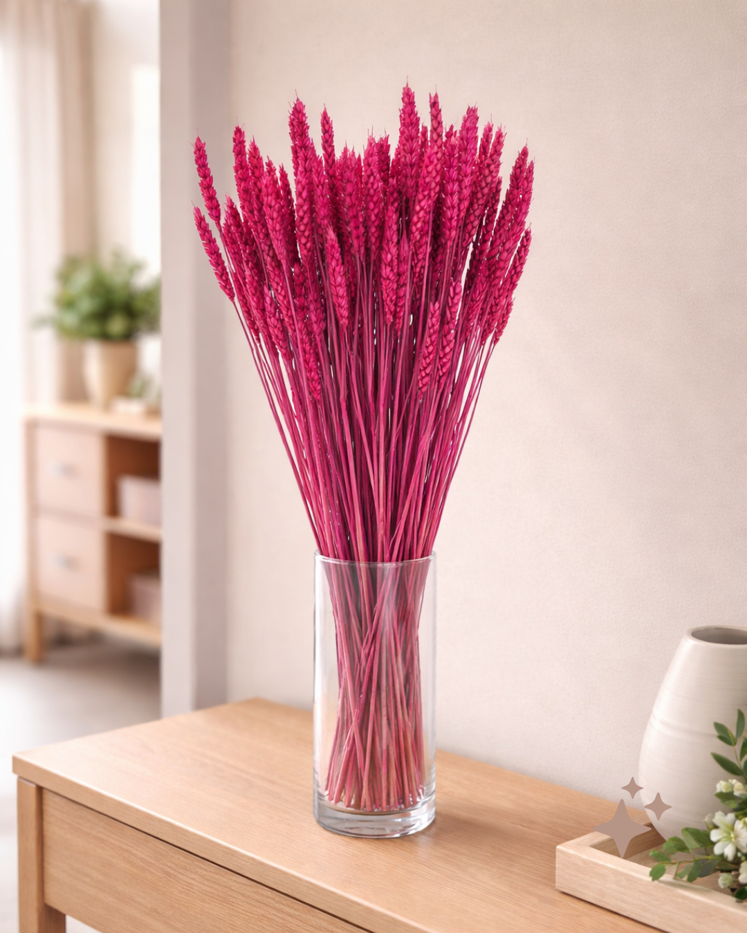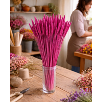 Add vibrant structure and rustic flair to your arrangements with our Dried Triticum – Cerise, also known as wheat, offered in large bunches of 80–100 stems, each approximately 50cm in length. With its firm upright form, Triticum is ideal for shaping DIY floral designs, offering both height and definition. The bold cerise tone brings energy and contrast to floral styling and is especially popular for creating a rustic look and feel with a modern, expressive twist.